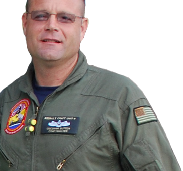 Andy Sutter, recently retired, joined the Navy at age 19. For the last 12 years, he was involved in the Navy’s LCAC (Landing Craft Air Cushion) program, advancing from Navigator to Craftmaster (pilot) to Craftmaster Trainer.